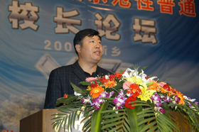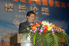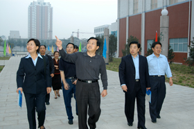 | 新乡市市委书记吴天君、副市长王保旺参加会议期间,在我校领导陪同下兴致勃勃参观校园 | 河南省教育厅副厅长李敏在开幕式上讲话 |
