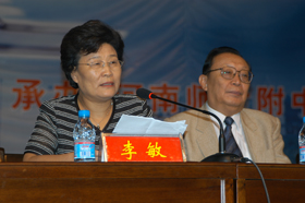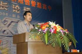 | 上海市市西中学特级校长杨安澜教授作专题讲学 | 河南师大附中校长滑秀林作题为《出思想、带队伍、抓中心》的专题报告 |