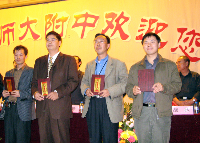 本网讯:我校刘新选老师在10月份揭晓的全国中学物理教学设计大赛中,以其崭新的理念,新颖的设计,在全国众多的参赛选手中脱颖而出,荣获一等奖,并参加了日前在大连举行的颁奖大会(如图)。同时,在大连举行的第七届全国中学物理青年教师教学大赛中担当加权评委工作,由于评判客观公正,与专家评委评分较为一致,荣获优秀加权评委奖(仅黑龙江、河南、上海三省市加权评委获此荣誉)。为河南师大附中乃至河南省争得了荣誉。
