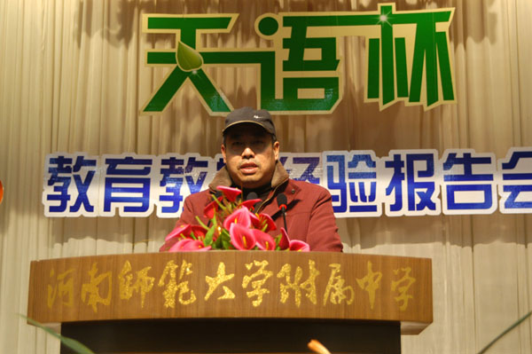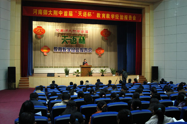 11月20日下午,我校西校区教工礼堂内不时掌声如潮,气氛异常热烈。原来,河南师大附中首届“天语杯”教育教学经验报告会正在这里隆重举行。周枫琳等10位首期“十佳”教师先后登台亮相,一展其名师风采,介绍自己多年来从事教书育人工作的成功经验。经过由中层以上领导担任的评委们认真评判,汪才安老师荣获特等奖,刘新选、段志起、周枫林、于现峰4位老师荣获一等奖,张丽娜、陈百华、董良、宋玉亮、臧绍民5位老师获二等奖。
