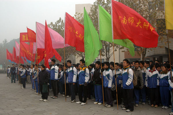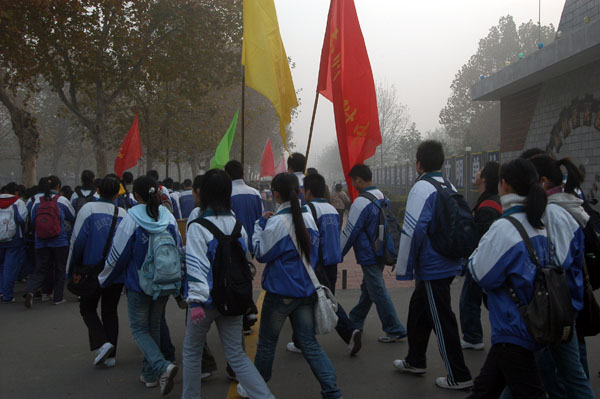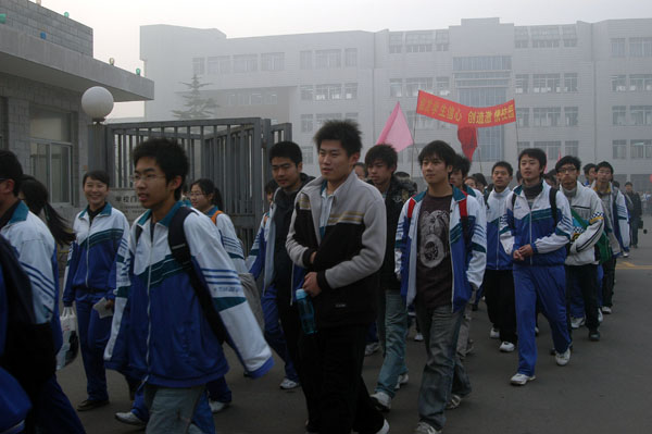 11月24日,我校高三年级学生在级班主任和部分教师的组织带领下,在学校后勤、医务、摄像及市交警部门等的配合护送下,沿卫河河堤进行了一次往返约30km的励志远足活动。