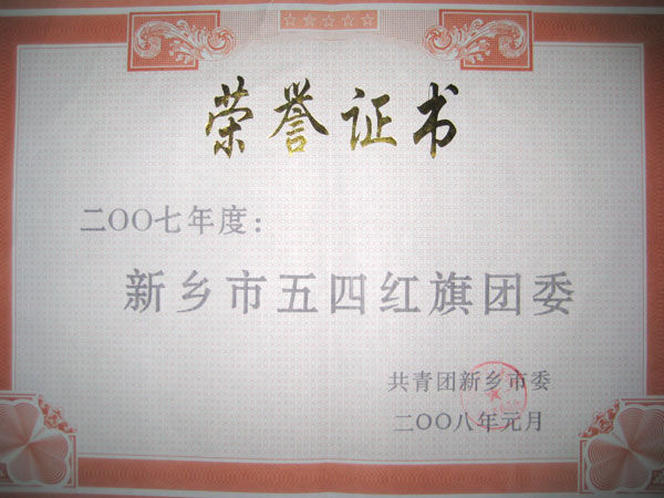2008年元月,我校团委被共青团新乡市委授予2007年度新乡市“五四红旗团委”荣誉称号。(都温中)