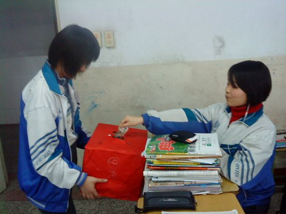 为了扩大捐款范围,20班又做了二十个捐款箱,希望在校园中掀起一场爱心狂潮。虽然由于准备不充分,他们失败了,但却引起了同学们极大的关注。一定程度上,这也是胜利。因为他们知道,对秦增伟的支持不仅需要有物质上的,更需要有精神上的!