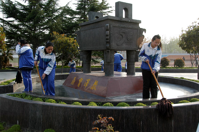 课余时间,在我们的校园里,你时常能见到这样一群忙碌的身影,他们身着整齐的校服,在报栏旁,在走廊里,甚至在厕所里,他们手拿抹布、拖把、笤帚等,在埋头干活,他们便是初二23班的同学。平日里,该班同学看到教学楼前垃圾桶旁有散落的垃圾,就会主动捡起;看到个别学生在走廊和花池旁乱丢垃圾,就会及时制止;在紧张的学习之余,他们还抽出休息时间,或在班主任的带领下,或自发的多次到校园的各个角落,参加义务劳动。