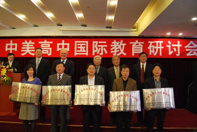 我校校长刘黎、副校长宋世礼和来自全国各地的73所兄弟学校校长参加了会议,并接受了由中国教育学会会长顾明远和美国学生管理集团(Student Management Group) 主席Wayne Brewer共同颁发的“中美高中生交流基地学校”校牌。