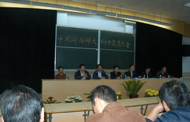 滑秀林书记代表上届党委在大会上作了题为《推动发展、服务群众、凝聚人心、促进和谐为建设“中原强校、中国名校”而不懈奋斗》的工作报告,刘齐晋副书记作了关于出台《河南师大附中党建制度》的说明。与会全体党员经过充分讨论,审议通过了党委工作报告和十三个党建工作制度。