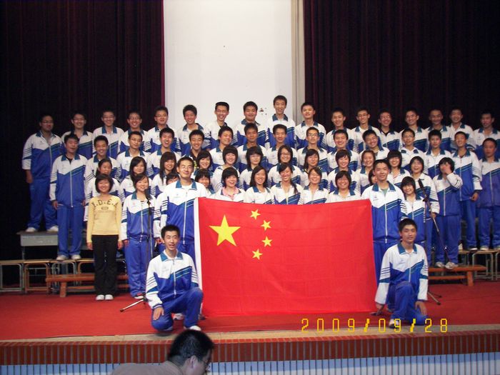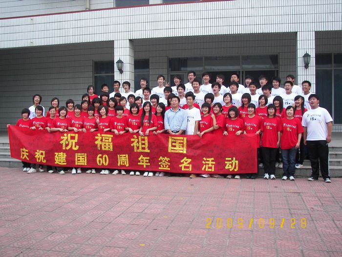 秋高气爽,盛世佳节。在举国上下满怀豪情喜迎中华人民共和国60华诞之际,河南师大附中高二年级分校于9月28日在科技馆报告厅举办了“庆国庆60周年红歌比赛”。 校领导及年级主任亲临指导,评委老师现场打分,比赛气氛热烈,人人情绪高昂。《爱我中华》、《红旗飘飘》、《国家》……,一首首红色经典歌曲铿锵有力、响彻大厅。同学们人人激情豪迈,个个笑容灿烂,他们用嘹亮的歌声深情地抒发对祖国母亲的满腔赤城。台上惊喜连连,高潮迭起;台下掌声不断,喝彩阵阵。最终,14班的《爱我中华》独占鳌头,12班的《我的中国心》紧随其后。欢乐时间短,曲曲显深情,伴随着《精忠报国》雄壮有力的歌声,高二年级分校“庆国庆60周年红歌比赛”圆满结束。