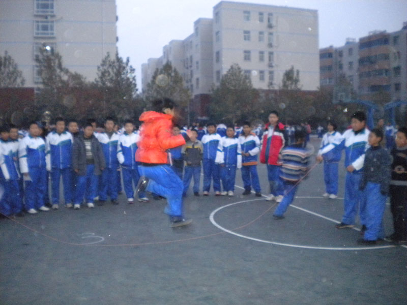 为丰富同学们课外文化生活,锻炼同学们体质,增强班级团结合作意识,配合学校首届体育节文化活动,11月份初一年级在西校区操场进行了跳大绳比赛,全年级各班抽签共分为A 、B、C三大组,每班派出12名参赛队员,两人负责摇绳,10名同学进行跳绳,成8 字型来回跳,以在三分钟内各班参赛同学路过的次数多少进行排名,最后经过激烈的角逐,分校金龙5班略胜一筹,以226个名列榜首,分校金龙9班、金龙11班紧追其后,其他各班也以优异表现展现了初一年级学生良好的精神面貌。