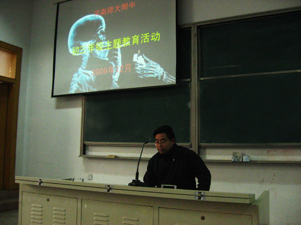 12月18日下午第三节,初三年级主任岳腊生老师在西校区阶梯教室对抽烟学生进行了专题教育。12月以来,按照学生处的统一部署,根据学生的举报和各班主任老师的调查,发现部分班级的个别学生有抽烟行为,为了巩固良好的班风学风,防止此类不良行为蔓延,年级部从香烟的有害成分、初中生抽烟的成因、青少年抽烟的危害等方面对以上学生进行了教育,家长参加了旁听。(周武强 郭杰)