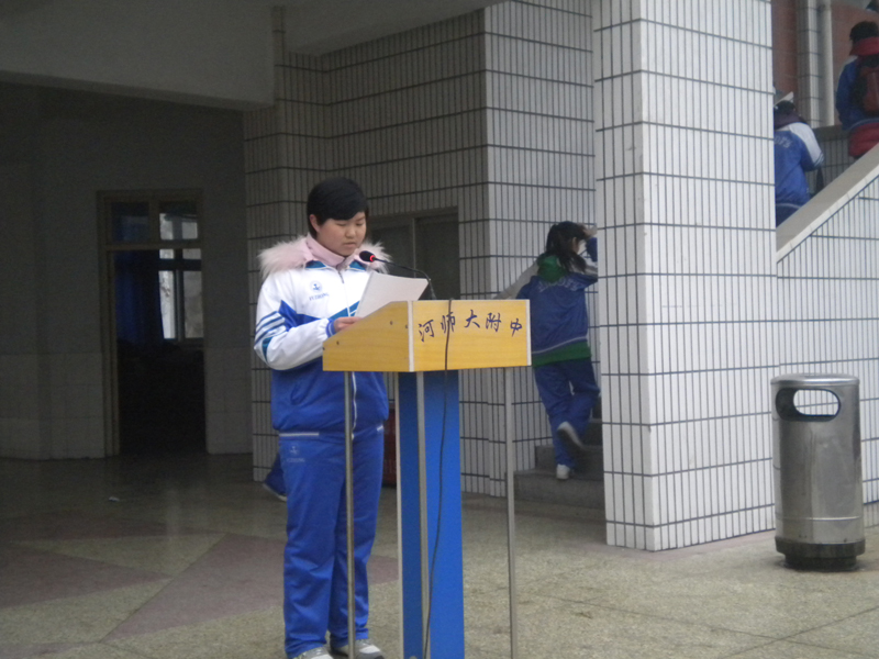 升旗仪式后,初一年级上学期期末考试年级第一名本部(4)班谢冰镜同学代表全体同学在国旗下讲话,讲话内容振奋人心、鼓舞士气。随后,初一年级部对上学期学生的学习及各方面表现进行总结表彰,评出了“学习之星”、“进步之星”、“优秀干部之星”、“劳动之星”、“德育之星”、“体育之星”、“文明之星”等七类星级人物。我校团委书记杨呈杰、初一年级部主任罗强和副主任崔艳芳为获得“七星”荣誉的同学进行颁奖。