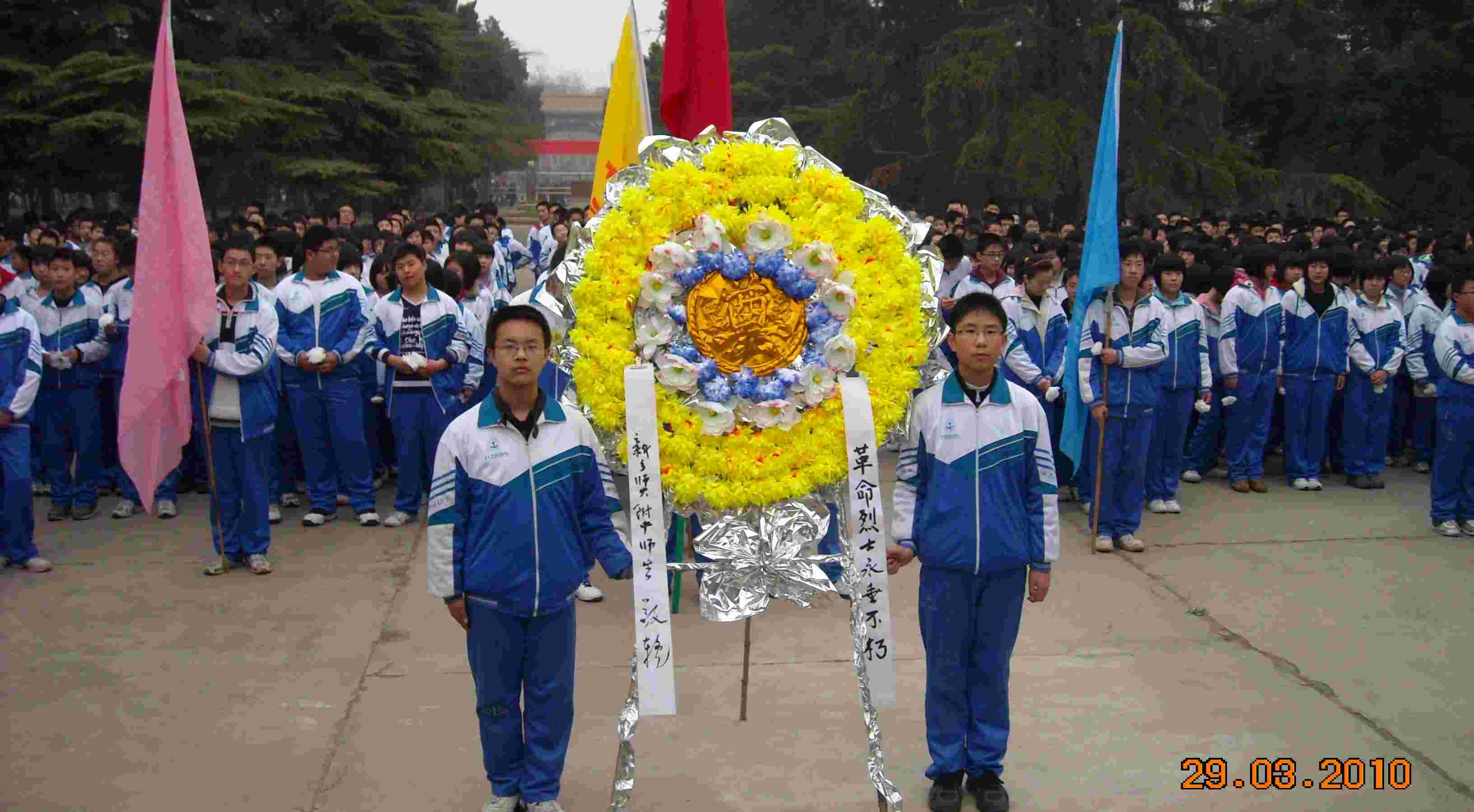 “清明时节雨纷纷,路上行人欲断魂”,清明节到来之际,河南师大附中以此为契机,为悼念革命烈士,缅怀先烈的丰功伟绩,教育学生继承革命先烈的光荣传统,弘扬民族精神,发扬先烈遗志,学生处、校团委联合发起,由初二年级部宋玉亮主任和都温中副主任具体负责组织,3月29日下午初二年级全体师生代表学校开展了“缅怀革命先烈,立志报效祖国”清明节扫墓活动。学生处主任杨相臣,团委书记杨呈杰代表学校随行。