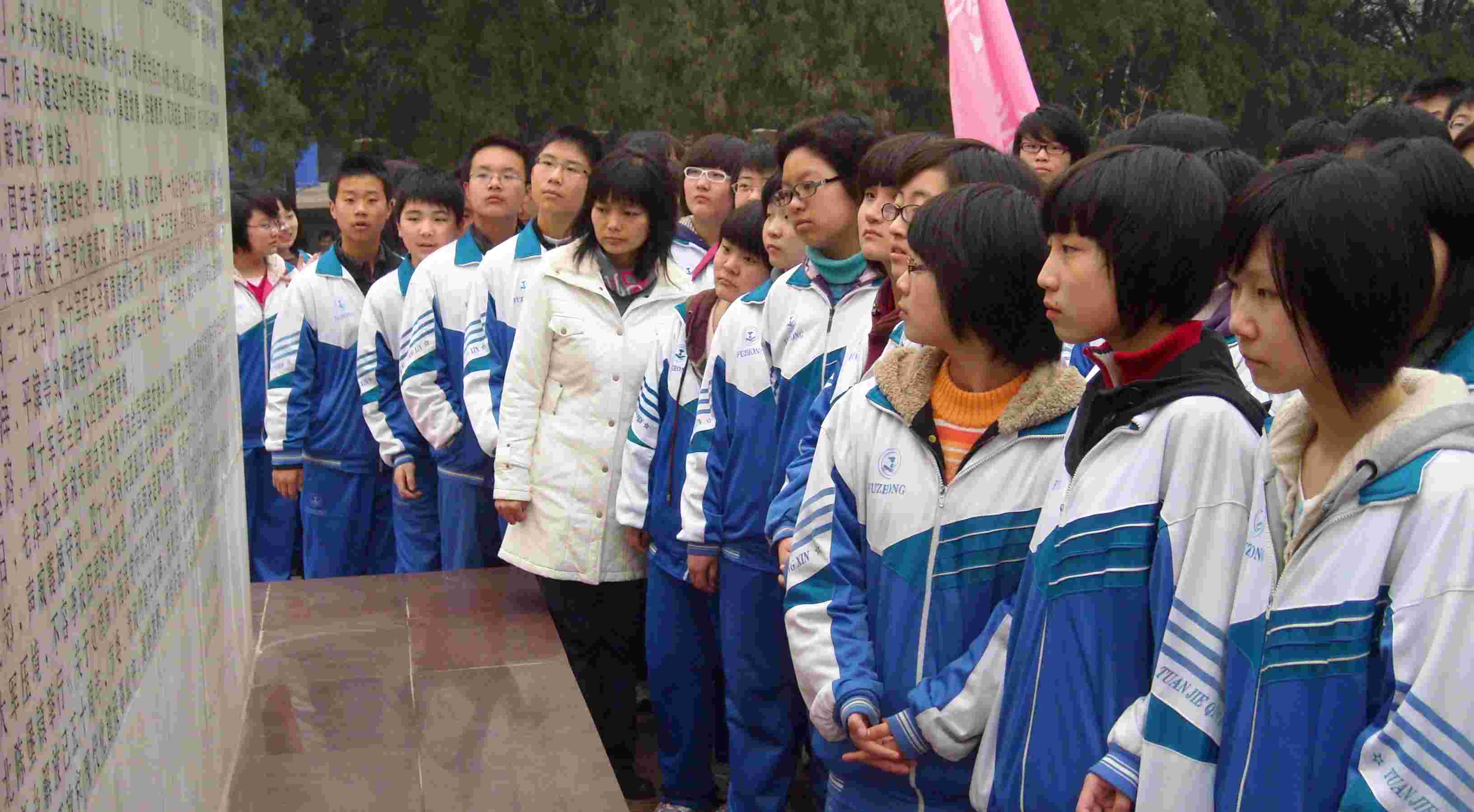 3月29日下午,河南师大附中初二年级部全体师生穿戴齐整,手持白花,排着整齐的队伍从本校出发,怀着对烈士无限崇敬的心情步行来到新乡市革命烈士陵园。松柏常青铭不朽,山河巍峨寄追思,学生代表发言后,都温中主任发表讲话,使同学们深切地感受到现在的幸福生活的来之不易,要以积极态度和高昂斗志投入到学习和生活当中。首先全体师生向革命烈士鞠躬默哀寄托沉痛的哀思,接着团委书记杨呈杰带领初二年级全体同学在烈士墓前进行入团宣誓仪式。随后学生代表向烈士墓敬献了花圈后有秩序地向烈士鲜花。最后,在团委杨成杰书记和年级部主任宋玉亮的带领下,全体同学逐一参观陵园内的革命烈士纪念馆,在馆中看到战役时留下的实物,不由地心生触动。在那里,同学们没有了往日的喧闹,没有了过去的嬉笑,都静静地肃立着,用自己坚强的意志捍卫着烈士墓的荣誉,缅怀烈士的英雄事迹,表达自己对革命烈士无比崇敬的心情。