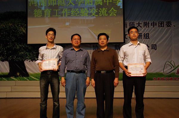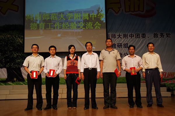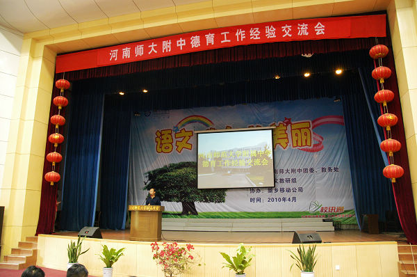 2010年5月11日(周二)下午四时五十分,由学生处主办的校级班主任德育工作交流会在西校区大礼堂盛大召开。本次经验交流会各个年级共派出14名代表教师参加,以演讲的形式和全校教师交流自己工作中的德育教育感悟。学生处的三名主任和六位年级主任担任评委,刘校长、滑书记、宋校长、闫校长等校领导莅临会议。