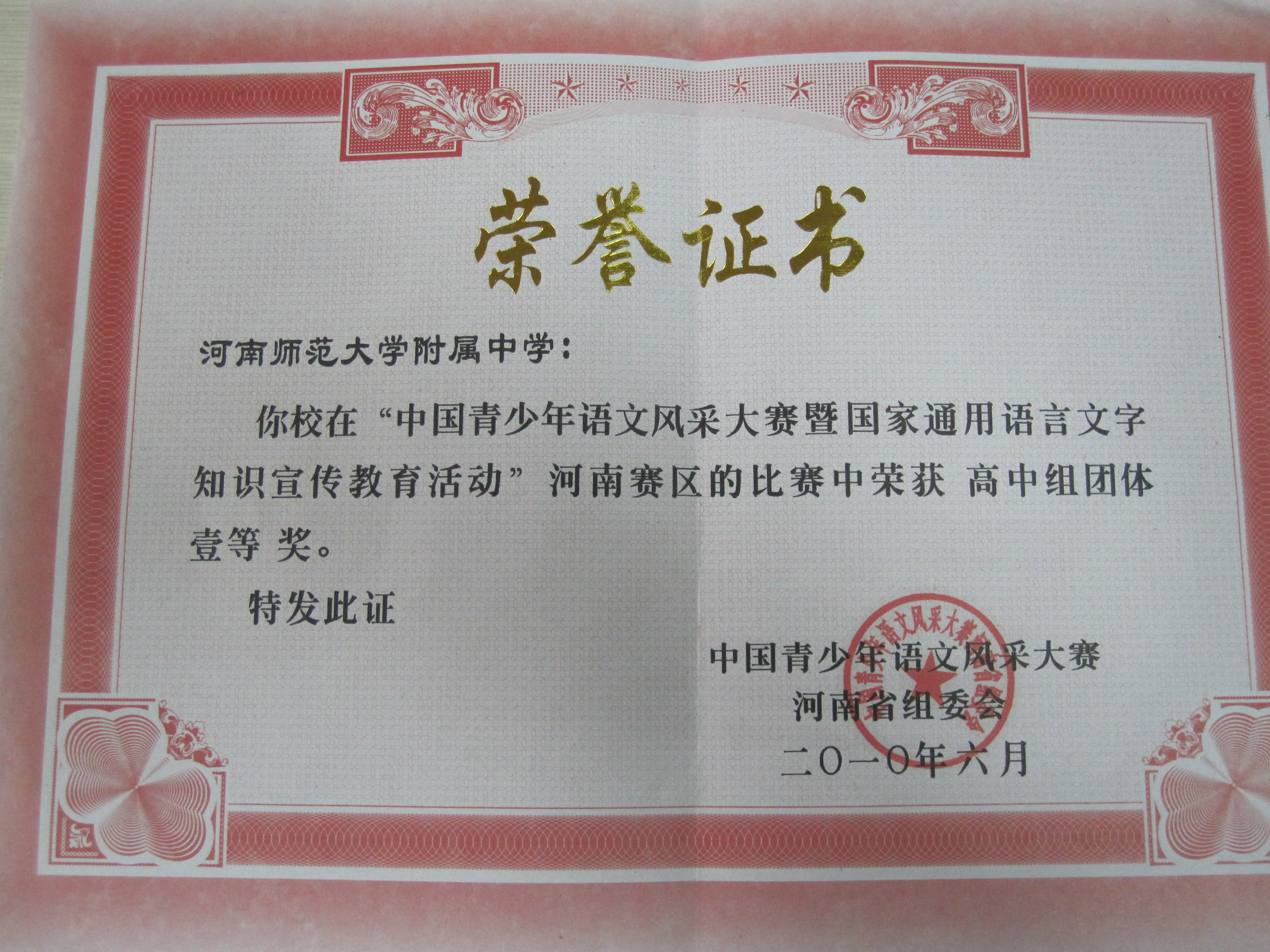 中国青少年语文风采大赛暨国家通用语言文字知识宣传教育活动河南赛区由河南省教育厅主办,省语委承办,从2009年11月启动,截止到2010年5月,历时半年,在各地市语委办、各参赛学校的认真组织下,活动开展得富有成效。经组委会严格评选,小学、初中、高中共有74支代表队获奖。