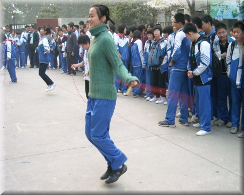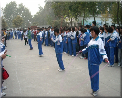 按照校团委本学期校园文化节工作的相关部署,近日,初三年级成功举行了校第二届体育节年级跳绳比赛。