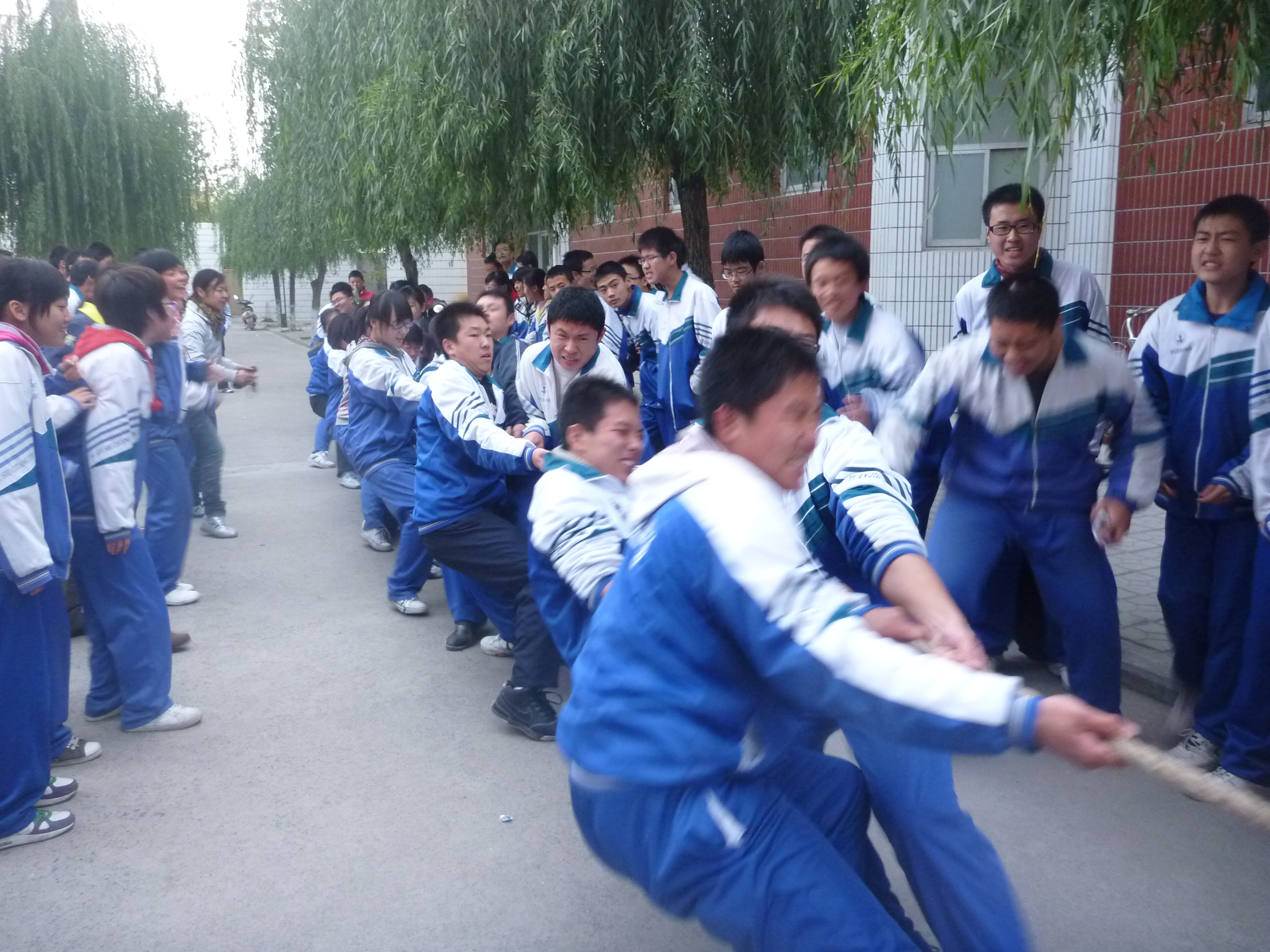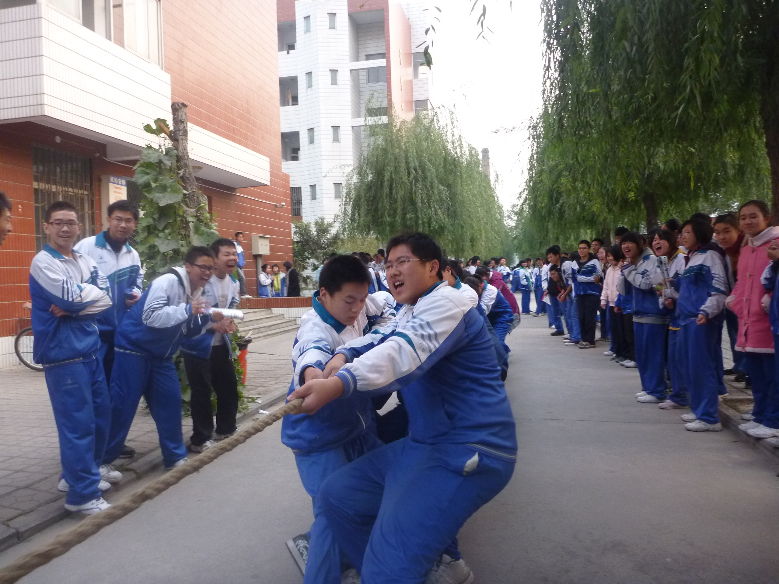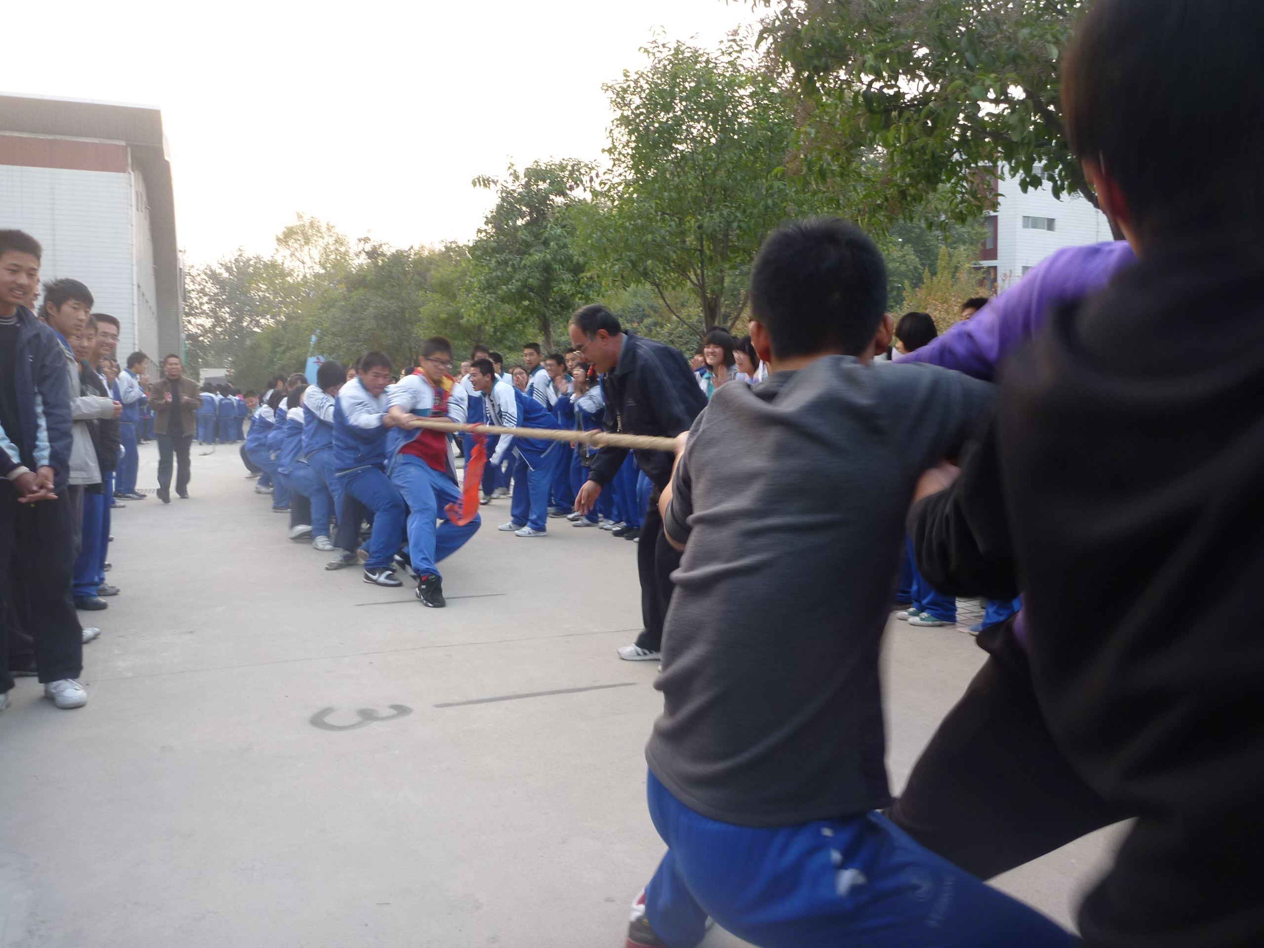 10月27日下午,河南师大附中科技馆前人头攒动、喊声整天,热闹非凡。我校第二届体育节高一年级拔河比赛在这里火热进行。这标志着高一年级体育活动周正式拉开了帷幕。