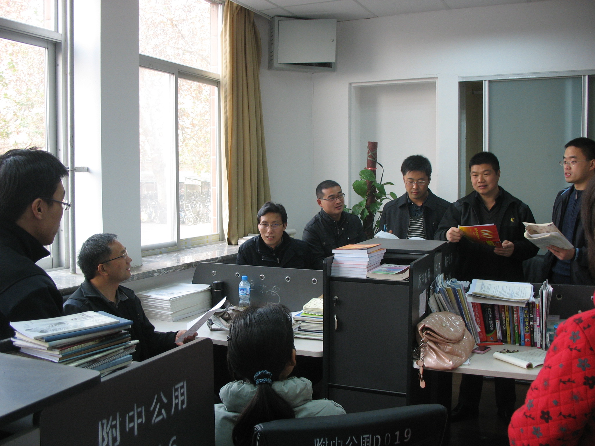 2010年11月26日下午第3、4节课在二号教学楼五楼理科办公室,高三化学备课组长王军文老师组织该组老师开展了集体备课活动。主要内容包括五个部分:备课的再思考再强调、即将进行的月考所用理综化学的试题命制与讨论、近期日常教学中学生问题的反馈与后续的措施、化学学科能力素养的提升工程--“一日一读一练”工程的设想与酝酿、下周集体备课中心发言人和内容的安排。