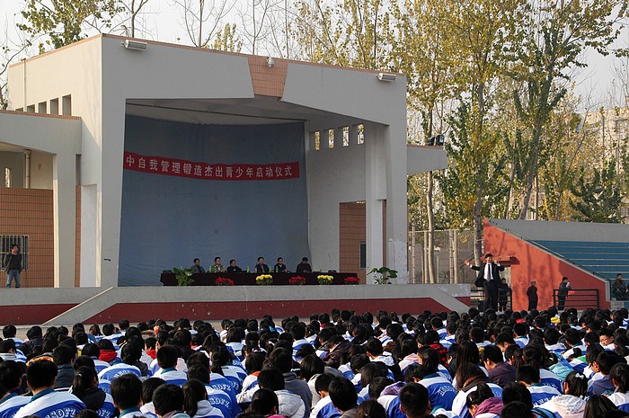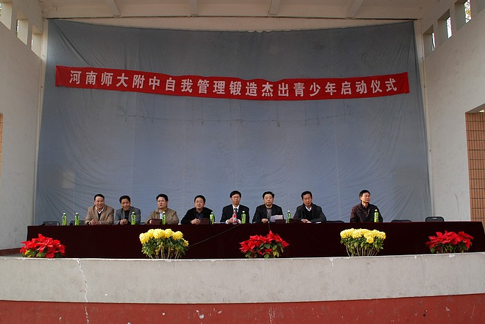 2010年11月30日下午1点,长期从事青少年校外活动拓展训练的资深专家、北京蓝图伟业教育机构创始人、北京大学高级讲师黄泰山老师应邀来我校参加《自我管理锻造杰出青少年》启动仪式。刘黎校长、滑秀林书记、刘齐晋副书记、宋世礼副校长及各职能部门主任与高一、初一全体学生和级、班主任一起全程参加了启动仪式。启动仪式由宋校长主持,刘校长为启动仪式致词。