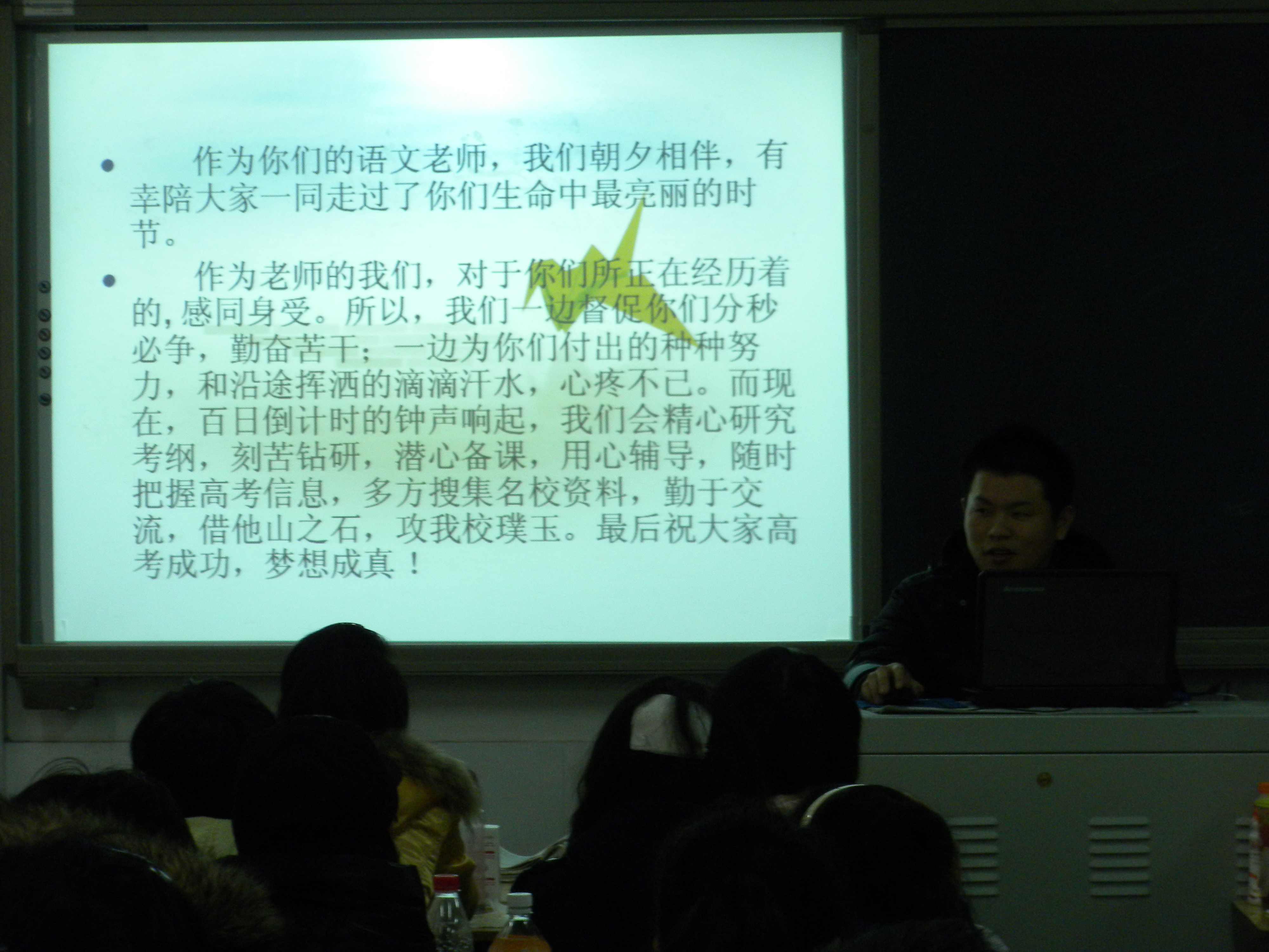 会后,同学们纷纷表示,向百天要效率,战胜高考,回报师长!