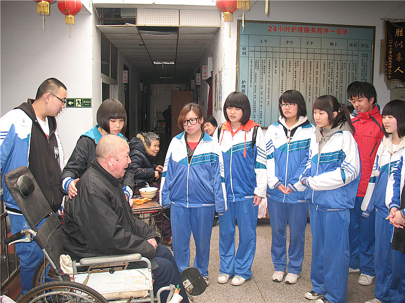 短暂的劳动之后,国际部的师生和老人们唠起了家常。一位参加过朝鲜战争的老人讲起了他的往事,国际部的王冠予同学更是用一首韩语歌将老人的记忆带回了那个激情燃烧的岁月,老人主动给我们唱起了《一条大河》,虽然声音不再响亮,但是老人的神情依然坚定无比。国际部的女生给老人们跳起了自编的舞蹈,老人们看的津津有味,纷纷拉着同学们合影。活动接近尾声,老人们依依不舍,同学们也觉得时间过得太快,纷纷表示希望以后还能再来。