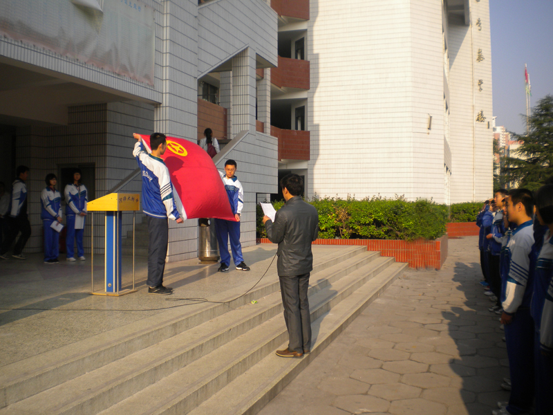 4月23日早晨,朝阳普洒大地,国歌声响彻校园,初二年级在主校区中心广场隆重举行升国旗暨新团员入团宣誓仪式,仪式由年级学生会主席朱子璇同学主持。仪式开始,年级仪仗队迈着整齐的步伐护旗入场,准备升旗,紧接着全体师生唱国歌,升国旗。升旗结束后,由本学期在期中考试取得优异成绩的初二本部四班李泽昱同学代表全体同学在国旗下讲话,鼓舞大家珍惜学习机会和时间,发奋图强,面对学习生活中的困难与挫折,要勇往直前,迎难而上。