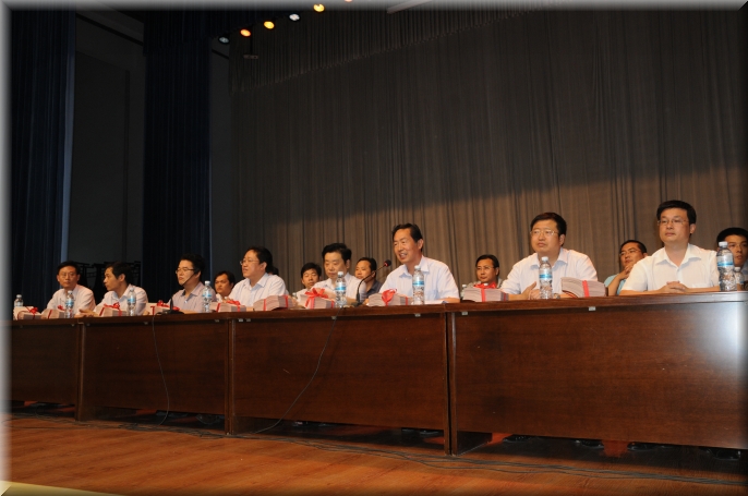 6月22日下午下第二节课后,初中部2011届626名学生、初三年级全体教师和家长代表共650余人齐聚教工礼堂。伴随着《飞得更高》、《我的未来不是梦》等激昂的歌曲,刘黎校长、滑秀林书记等学校各级领导步入会场,来到主席台就坐。在宋世礼副校长的主持下,毕业典礼大会于4:50正式开始。