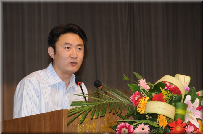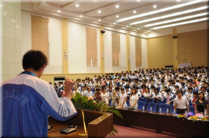 在全场热烈的掌声中,刘黎校长发表了热情洋溢的讲话。刘校长回顾了2011届学生初中三年的学习情况,对大家顺利完成初中课程表示了祝贺,为即将到来的中考发出了总动员令,给大家提出殷切期望和要求,欢迎广大同学高中阶段还回到母校河南师大附中学习。他还特别介绍了我校高中部国际班,艺术班,实验班、宏志班这些针对不同学情的特色教育教学途经,为不同程度的学生指明了前进的方向。刘校长亲切的话语激励着在座每一位同学拿出自信与勇气,去挑战自我、创造明天。