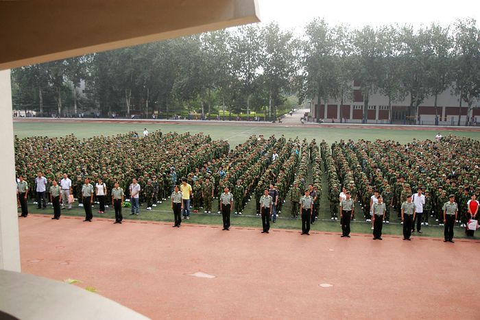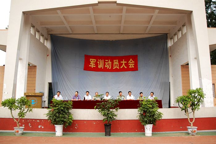 8月11日上午,我校在操场召开2011届初一、高一军训动员大会,71633部队首长、校长刘黎、副校长宋世礼以及有关初高中各部负责人等出席了大会,副校长宋世礼在大会上致辞,首先他代表学校党政领导和全体师生向71633部队全体教官表示热烈欢迎和衷心感谢,随后勉励全体参训学生勇于挑战自我,磨练意志,克难攻坚,用汗水浇灌精彩军训生活,并预祝本次军训能安全、和谐、规范、圆满成功。军训期间,初、高中各部负责人和年级体育教师轮流值班,全程指导协调,保证军训安全顺利的进行。