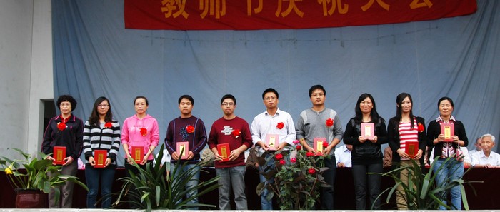闫新全副校长宣布学校关于对2011年取得中高招功勋教师、中高招优秀教师、优秀班主任标兵、最受欢迎的教师、青年教师希望之星等荣誉称号的教师进行表彰的决定,共计97名教师受到了表彰。