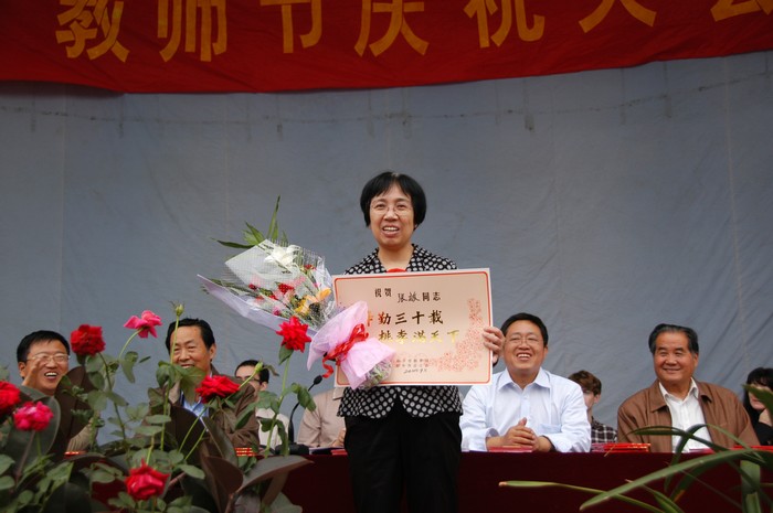 学校对从事教育教学工作满30年的张敏老师予以奖励,校领导为她颁发了“辛勤三十载,桃李满天下”荣誉证书,少先队员为她敬献了鲜花。
