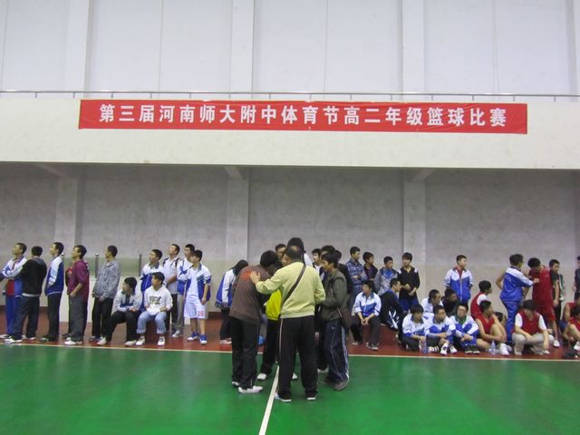 为贯彻中学生阳光体育活动的要求,丰富高二年级学生的课外体育活动,培养班级荣誉感、凝聚力以及团队协作精神,提高运动技术水平,激励学生积极参加体育锻炼,促进青少年学生身心健康成长,落实第三届河南师大附中体育节活动,为期一周的年级篮球联赛如期进行。简短的开幕式结束后,掌声雷动,气氛热烈,随着一声哨响,首场比赛也随即开始。