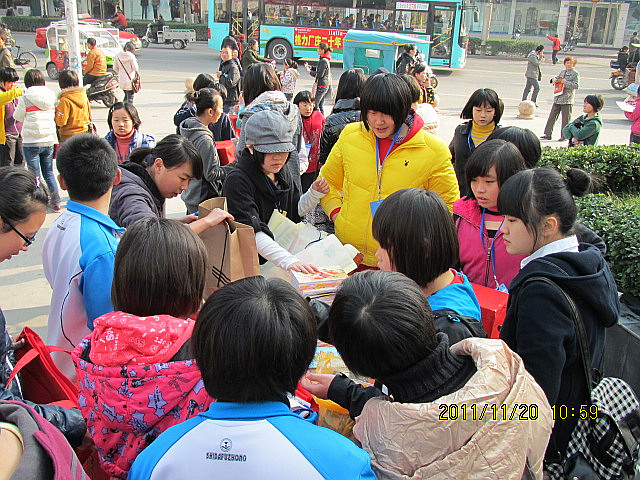 活动于2011年11月20日上午十点正式开始,全长两个小时左右,活动的主题是通过义卖、募捐这两种方式将全部所得捐给联合国儿童基金会中国分部。参与活动的全员先在东方文化商业步行街门口集合,然后按五到三人进行分组,每组分配一个募捐箱。每组的成员可以领取到一些本子和环保袋挂历进行义卖,义卖所得将放入该组的募捐箱内。