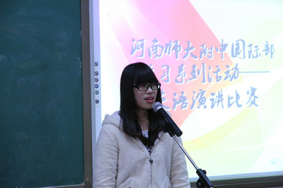 12月10日下午,国际部系列活动之英语演讲比赛在西校区逸夫楼阶梯教室成功举行,由中英班推荐的10名参赛选手给国际部中英班全体同学带来了一场精彩而紧张的英语盛筵。本次演讲比赛由命题演讲“我看留学”和自由问答两个环节组成,来自中方和英方教师组成的评委们认真聆听了每一位选手的演讲,并根据选手的发音、内容、仪态进行打分。在自由问答环节,评委们随机向参赛选手提出问题要求选手即兴作答,评委和选手的轻松和愉快感染了现场的每一名观众。然而,意想不到的事情发生了,前两名选手获得了相同的高分,评委席临时决定加赛一题,由Patrick老师向两名选手提出问题,最终,来自高三中英的Lory同学凭借标准的发音、流利的回答拔得头筹,获得比赛的特等奖。Congratulation!