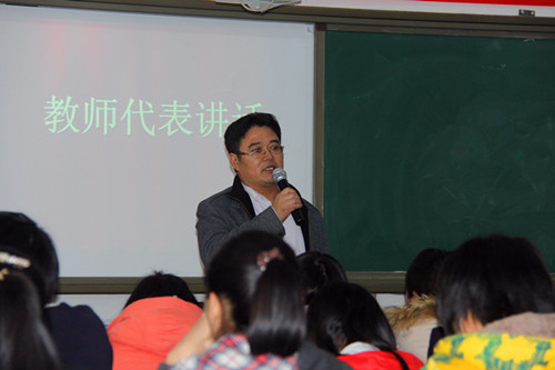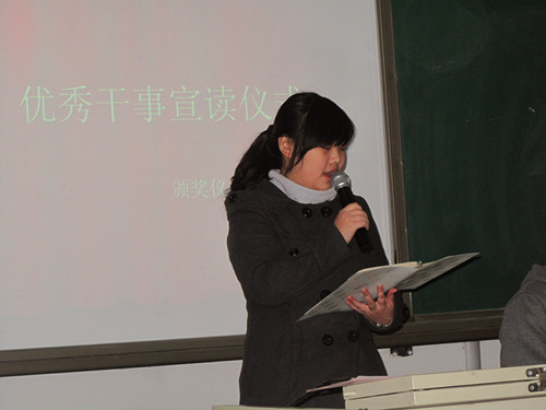 前任宣传部部长张蕾同学,代表全体老学生会成员发言并鼓励同学们努力学习,为国际部争光。