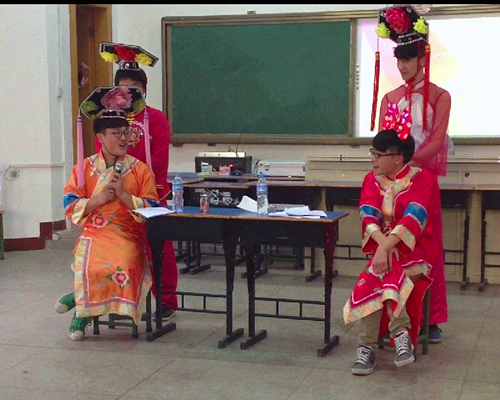 为配合学校社团文化节活动,展示国际部学生风采, 5月3日,国际部学生会文艺部和慈善社共同组织了国际部文艺节目选拔比赛,向校文艺节输送节目。所有参加的班级都十分重视,提前准备,积极彩排。同学们在表演中表现出了极大的热情,展现了自己最精彩的一面,节目异彩纷呈,高潮迭起,特别是根据近来最火的《甄嬛传》改编小品,搞笑动作喜剧《网吧》和韩国流行舞蹈《Rolly Party》最为火爆。