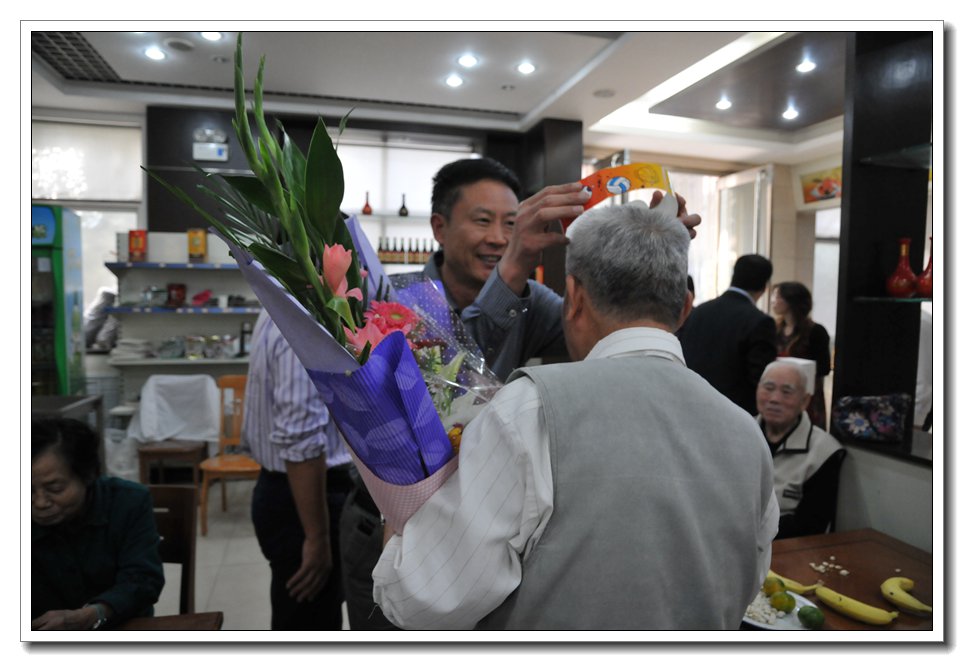 接下来,闫书记、赵校长、杨校长为今年年满八十岁的老寿星欧有洪主任送上了献花和生日蛋糕,并为与会的老同志发放了慰问金。老同志们和到会的领导们会议回顾往事、畅谈未来,座谈会在的温馨和谐的气氛中圆满结束。