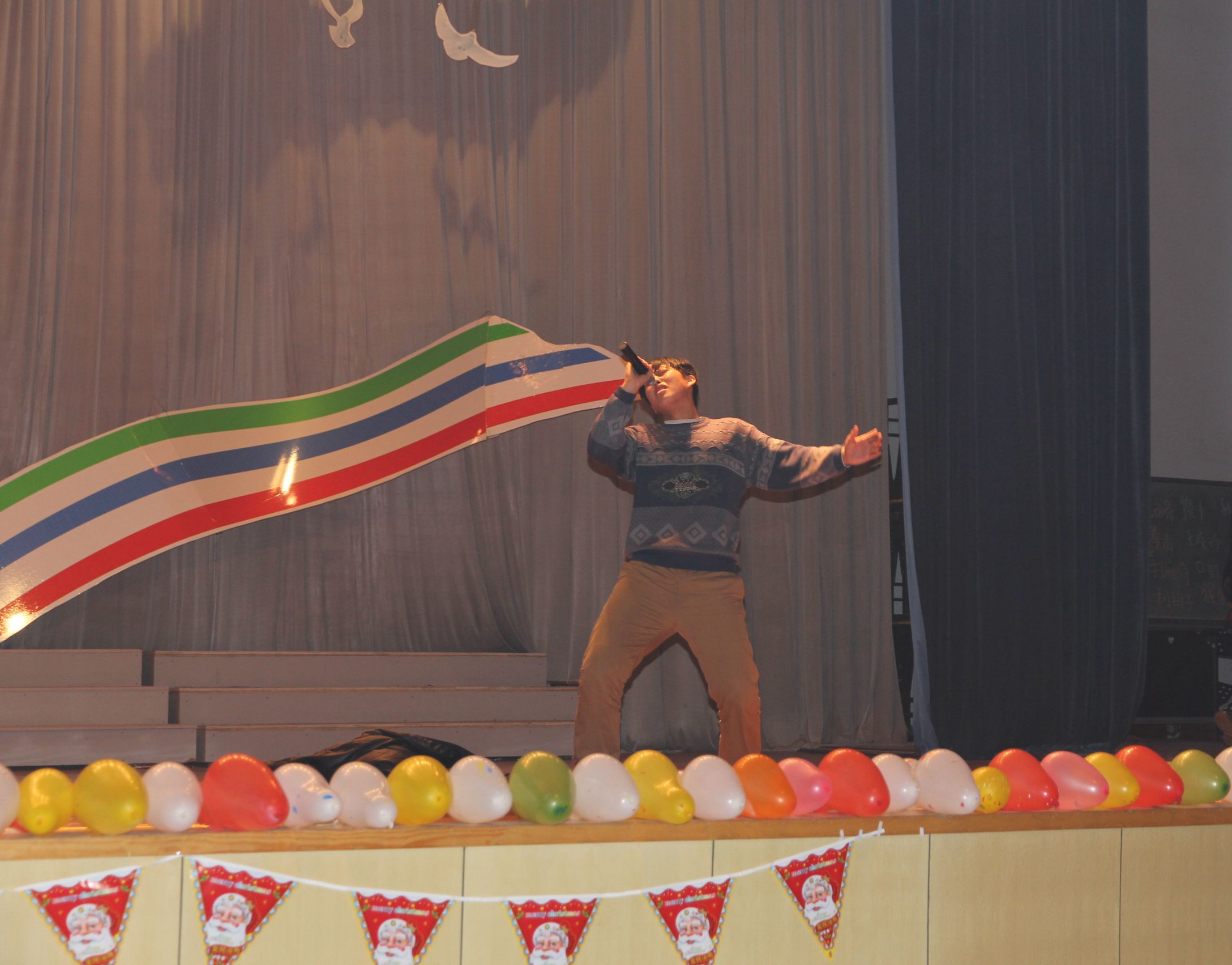 2013今年平安夜,国际部举行了一场特殊的活动,国际部师生共聚礼堂,布置圣诞节文化舞台,尽情享受了这一蕴含浓厚西方文化的节日。各班学生展现才艺,精心准备了一场精彩的圣诞晚会。歌声清扬,舞姿翩翩,小品幽默,游戏欢快,中西交汇,魅力四射。这场晚会凝聚中西节日文化元素,让学生对中西不同的节日文化有了一个全新的认识和真实的感受。