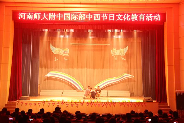 2013作为中西教育合璧的河南师大附中国际部,在西方盛大节日圣诞节平安夜,组织国际部的老师和学生在西校区大礼堂,举办了中西节日文化教育活动。