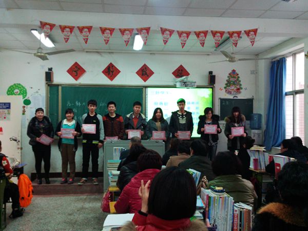 然后,班主任对上学期成绩优异、进步明显、服务同学、活动积极的同学进行了表彰;并选派优秀学生和家长代表分别发表了获奖感言和家教心得。
