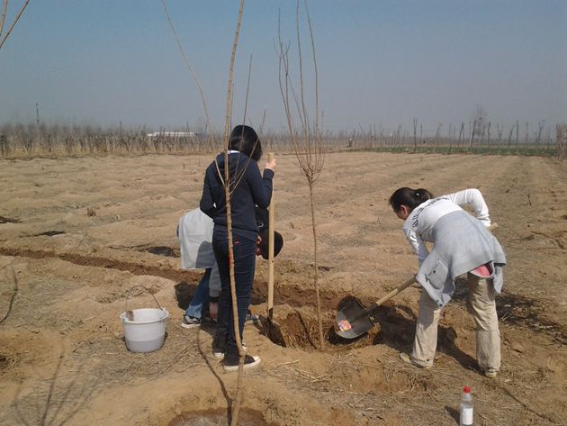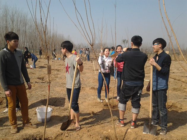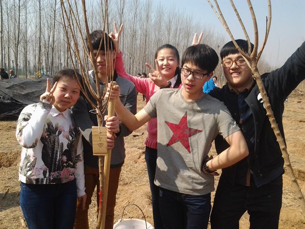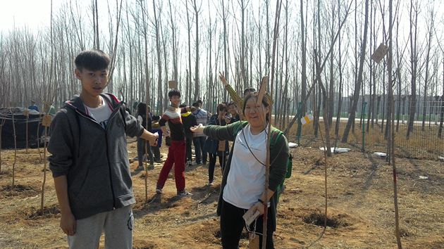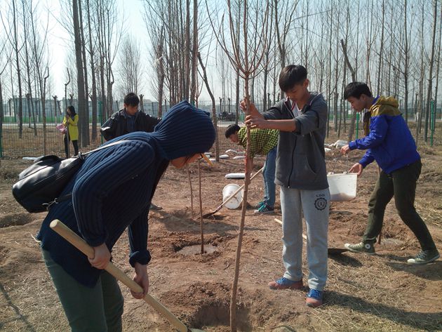 3月16日,国际部慈善社青年志愿者协会组织国际部师生40多人赴新乡市朗公庙乡金龙村义务植树。