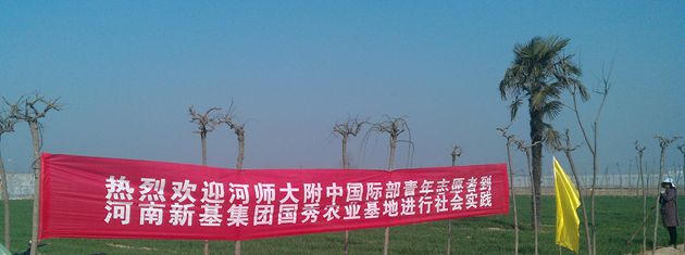 9点左右师生一行到达植树地点,新乡市新基集团国秀园林公司领导和金龙村的乡亲们举行了简短而热情的欢迎仪式。