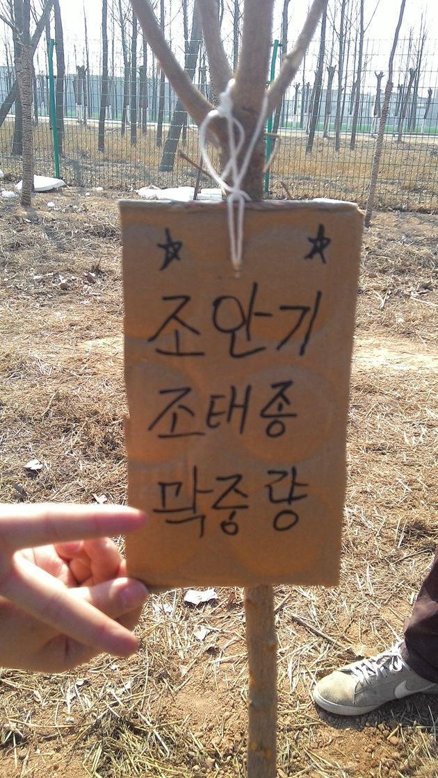 劳动结束,同学们还精心为自己种下的小树起了个性化的名字,并为自己的树宝宝挂上了名片,同学们都期待来年或十年后能再来看望自己的树宝宝。种下一棵小树,寄托一片期望,奉献一滴汗水,收获一份喜悦。