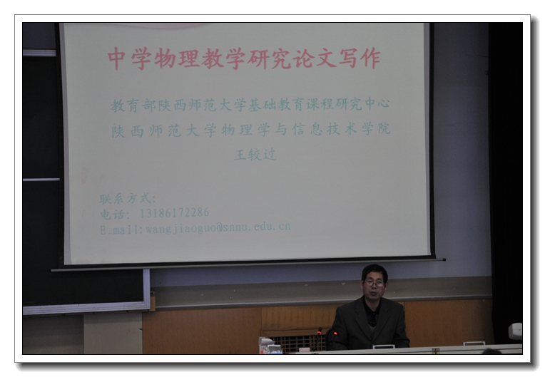 3月15日,陕西师大《中学物理教学参考》主编王较过教授前来我校为省名师工作室学员作《物理教学研究与论文写作》的专题讲座。王较过教授是陕西临潼人,生于1957年3月,现为陕西师范大学教授,硕士生导师,任陕西师范大学基础教育研究中心副主任,全国高等物理教育研究会理事。研究方向是物理教学论,教育测评,物理学史。曾先后在《物理》、《自然杂志》和《物理实验》等公开刊物发表论文60余篇,主编和参编著作、教材8部,主持教育部及学校研究课题多项。目前,正在进行基础教育物理课程改革和《科学》课程教师素质结构及培养的研究。本次讲座由中原名师、科研处主任刘新选主持。