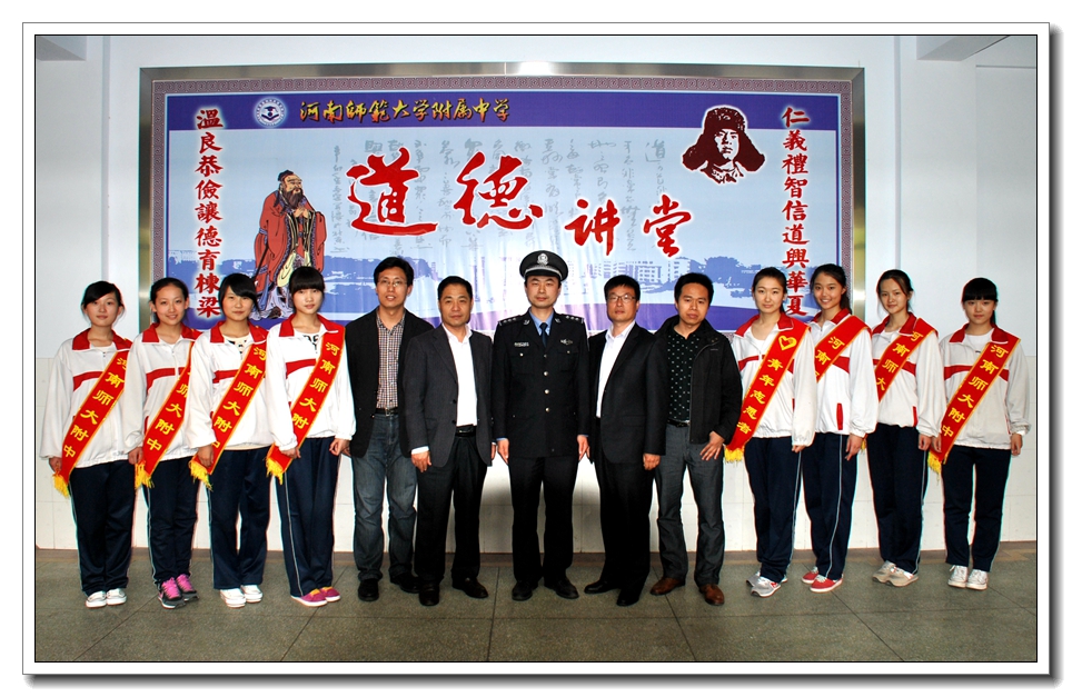 4月14日下午,以“增强法治意识·养成良好习惯”为主题的第13期道德讲堂开讲。本期道德讲堂由高二年级承办,特别邀请了河南省平原监狱教育科副科长郭永刚警官担任主讲人,郭警司以生动的案例向大家阐释了互联网犯罪的危害性,指明了养成良好习惯对走好人生路的重要性。学校党政领导和高二年级及国际部700余名师生共同参与了本次活动。 本期道德讲堂由李桂明老师主持。她首先以“在生活中,你有没有过抱着好玩的心理使用网络制造或传播谣言?你有没有过由于听信谣言而做过令自己后悔的事?你是否知道国家对互联网犯罪处理的相关法律条令?”三个发人深省的问题引出了本期讲堂的主题——增强法治意识·养成良好习惯。 接下来,全体师生用饱满的热情、洪亮的声音齐唱《公民道德歌》,感受歌曲所传递的独特的精神内涵;在杨宝刚书记颁发我校道德讲堂特邀讲师聘书后,郭永刚警司开讲。他结合高中生的成长生活特点,讲述了网络不良行为习惯的影响,通过具体的案例剖析了网络违法犯罪的处理结果;接着郭警司又通过播放视频、引经据典等方式来因势利导,启发在座学生要养成诚实守信、勇于担当、坚韧不拔、正确交友等良好的行为习惯,走好人生的每一步。精彩的讲述数次被现场师生热烈的掌声所打断。 在“写感悟”环节,全体与会人员写下自己对法治观念、对道德理念最为真挚的感悟,并与周围的人交换、分享;接下来,全体师生在主持人李桂明老师的带领下,齐声诵读孔子、商鞅和刘备的经典名句。最后,与会领导、老师、学生纷纷将写有自己心灵感悟的便签纸贴在礼堂门口的心愿墙上,本期讲堂圆满落下帷幕。 守法是社会主义核心价值观的重要内容,是构建和谐社会的道德底线。随着时代的发展,互联网已经深入了中学生的生活。如何在互联网上规范自身行为、增强法治意识,进而养成良好的行为习惯,做到“文明上网、科学用网”,本期讲堂给同学们带来了深深的启示。