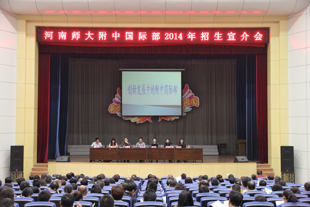 5月17号河南师大附中国际部2014年招生宣介会在西校区教工礼堂如期召开。此次大会分为:国际部发展概况和项目特色介绍、毕业生代表发言、现场互动咨询三个环节。