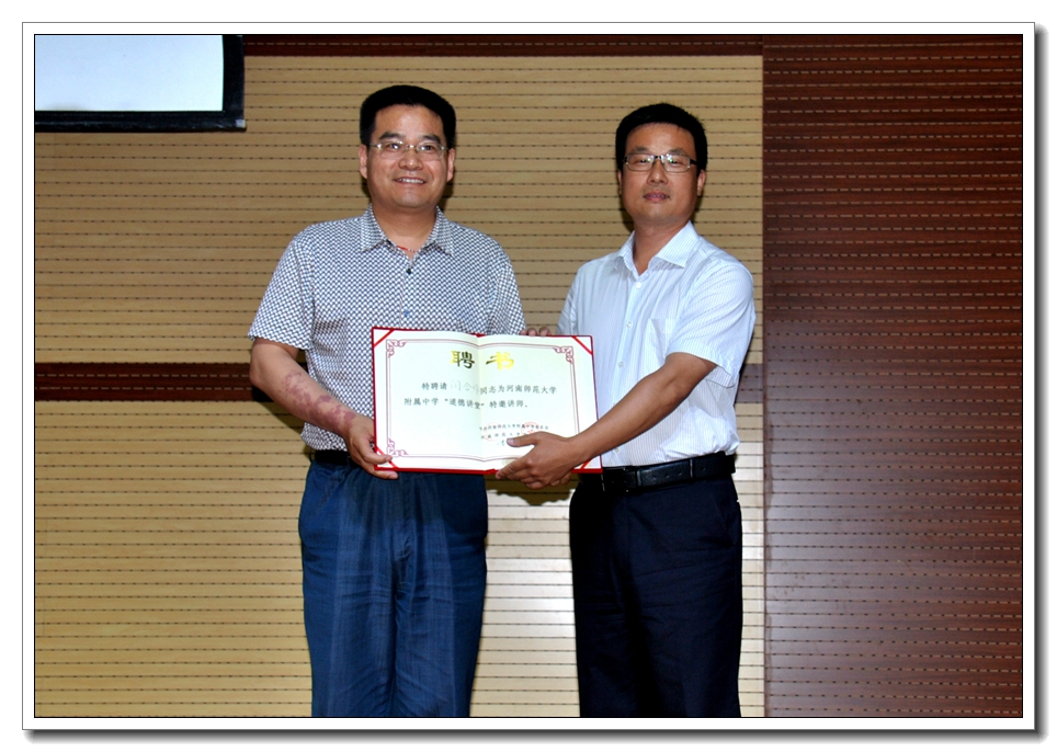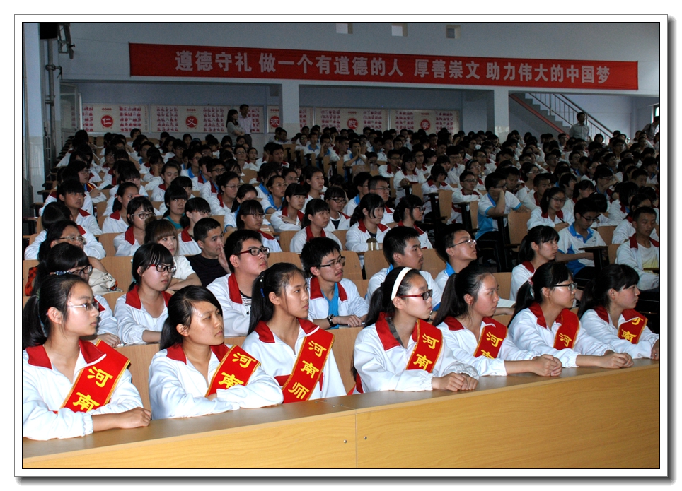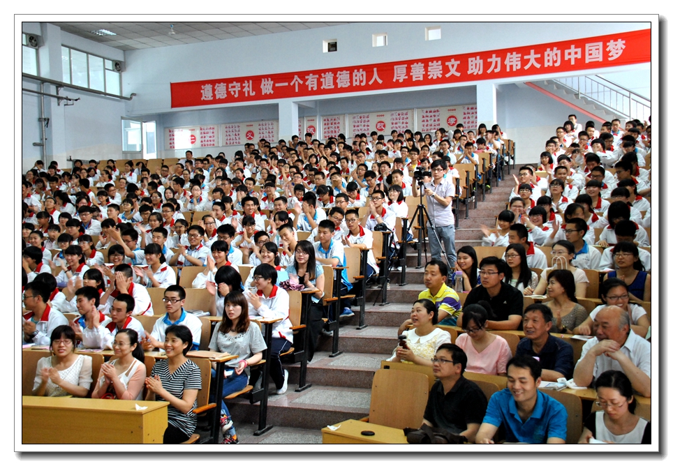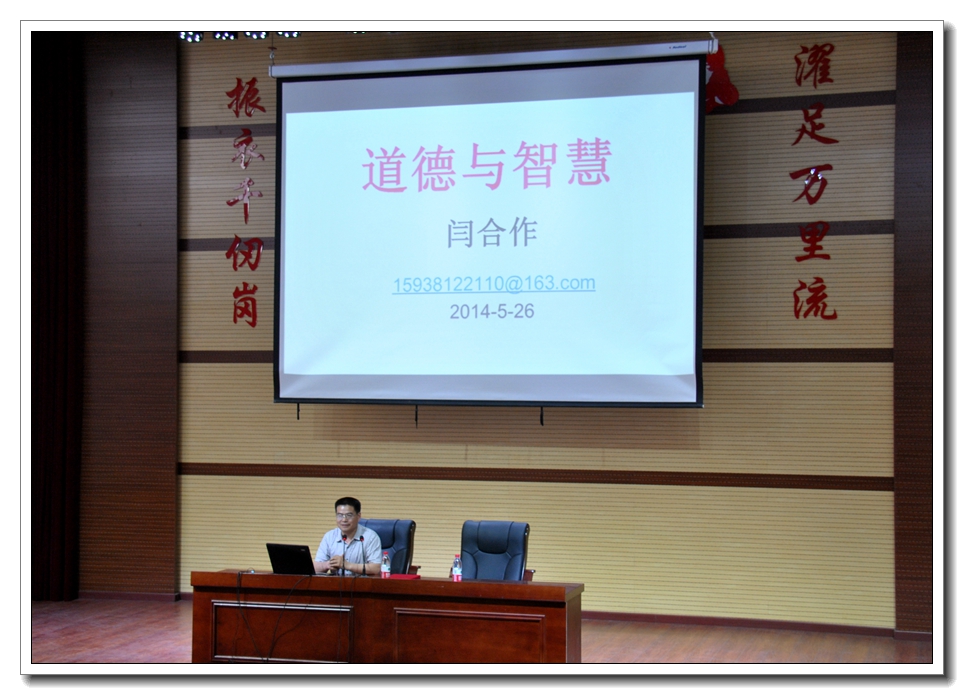 5月26日下午,以“道德与智慧”为主题的我校第14期道德讲堂开讲。本期道德讲堂由高一年级承办,特别邀请了河南省孔子学会副会长、河南省老子学会副秘书长,河南省儒学文化促进会讲师团副团长闫合作老师担任主讲人,结合儒家经典,从求知学习、为人处世、提高修养、智慧生活等方面深入浅出、生动形象地讲述了传统道德的力量和文化经典中的智慧。新乡市传统文化协会的相关领导、我校党政领导和高一年级500余名师生共同参与了本次活动。 本期道德讲堂由刘毅老师主持,他首先向与会师生简介了主讲人闫合作老师。闫合作老师是济源市职教中心教科所所长,济源市政协委员,省教育厅学术技术带头人,王屋山道学文化研究会秘书长,曾两次被《教育时报》评为教育年度人物。他长期从事经典文化研究,致力于以孔子的教学方法、《学记》的教学理论、老子的教育哲学、诸子的教育思想为借鉴,建构适应中国文化的中国式教育。闫老师曾以“孔子教学艺术的代言人”被评为2006年度“领跑中原课改的七张面孔”之一;以“向中华经典求教育智慧”入选“豫派教育2011年度管理智创人物榜”。在杨宝刚书记颁发我校道德讲堂特邀讲师聘书后,闫老师正式开讲。 闫老师的讲座以《道德与智慧》为题。他首先阐述了道德的意义:即在合适的时间、地点,说合适的话,做合适的事;接着用生活中的例子诠释了道德的内涵以及怎样做才更道德;随后,闫老师与师生重读《论语十则》前五则,用另一种角度和方式解读了经典中蕴含的智慧。他告诉同学们:知与不知都是知,知“知”为“智”,而知“不知”为“慧”。人的差别就是“习”的差别,要想成功成才,就要向先贤孔子那样,学会智慧地“叩其两端”,做好学前“习”、学中“习”和学后“习”。具体而言,就是在学前,要做到“温故知新”,学习中要善于“举一反三”,学习后要注意“学以致用”。闫老师在娓娓道来中不时和台下的师生互动交流,热烈的掌声不时在讲堂响起。作为本学期最后一期道德讲堂,广大师生不仅沐浴了道德的光辉,更增长了智慧的才干,收获颇丰。 一年来,我校已举行办了14期道德讲堂,“读经典、学文化、正品行、传道德”的观念已经逐步浸润校园,成为了广大师生的心声。道,源于教育;道,重在传承;道,贵在坚持。我们相信,作为我校深层德育的重要载体,道德讲堂一定能在广大师生的支持下越办越好,努力使每一位参与过活动的人,都成为道德的传播者、践行者和受益者。