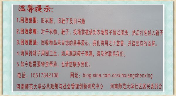 金秋十月,硕果飘香。国际部慈善社与河南师大社区、社科院晨星旧物回收协会联手开展了一次为贫困地区孩子募集旧衣物、旧书籍、旧玩具的慈善活动。
