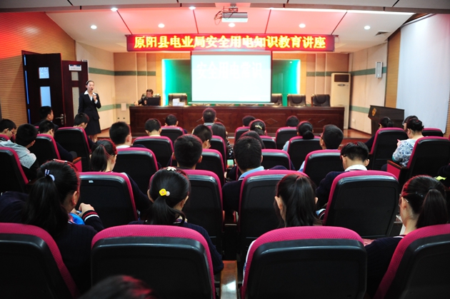 参观结束,全体师生又参加了原阳县电业局电力工程师为大家准备的“日常用电安全知识讲座”,工程师通过鲜活的日常实例和现场演示,为大家上了一节实用生动的用电安全课。