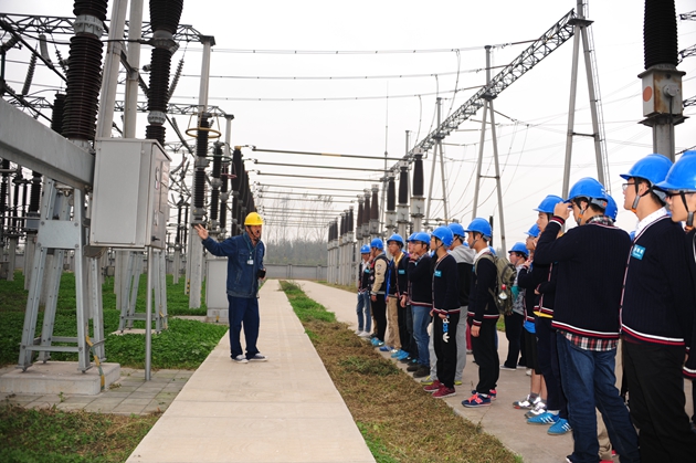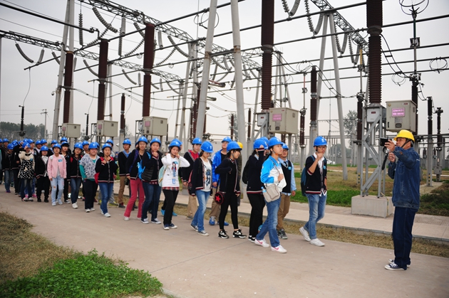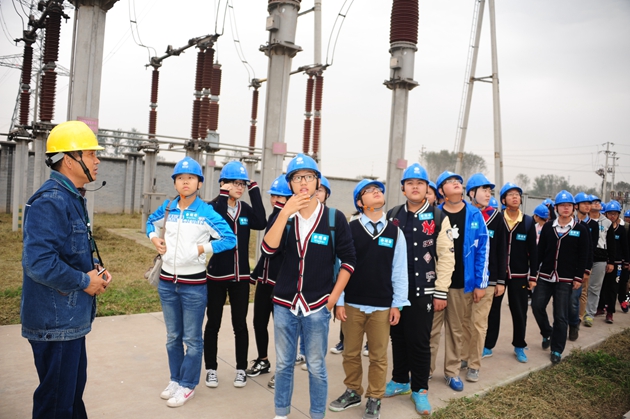 全体师生首先参观了新乡市米香220千伏变电站,该变电站位于新乡电网南部原阳县境内,为省“1811”电网发展提速工程首批集中开工项目。安装有180兆伏安变压器2台,220千伏出线2回,110千伏出线4回、10千伏出线6回。该变电站是原阳县第一座220千伏变电站,在原阳县电力建设中具有里程碑的历史意义。该工程建成投运后,彻底打破了原阳县有史以来仅靠110千伏电压等级输电的供电形势,提升了新乡南部电网的供电能力,使新乡主网结构进一步优化。通过变电站工作人员的讲解和实地参观,广大师生对家乡的电力现代化发展有了更深刻的认识,同时也对物理知识实际应用有了新的理解。