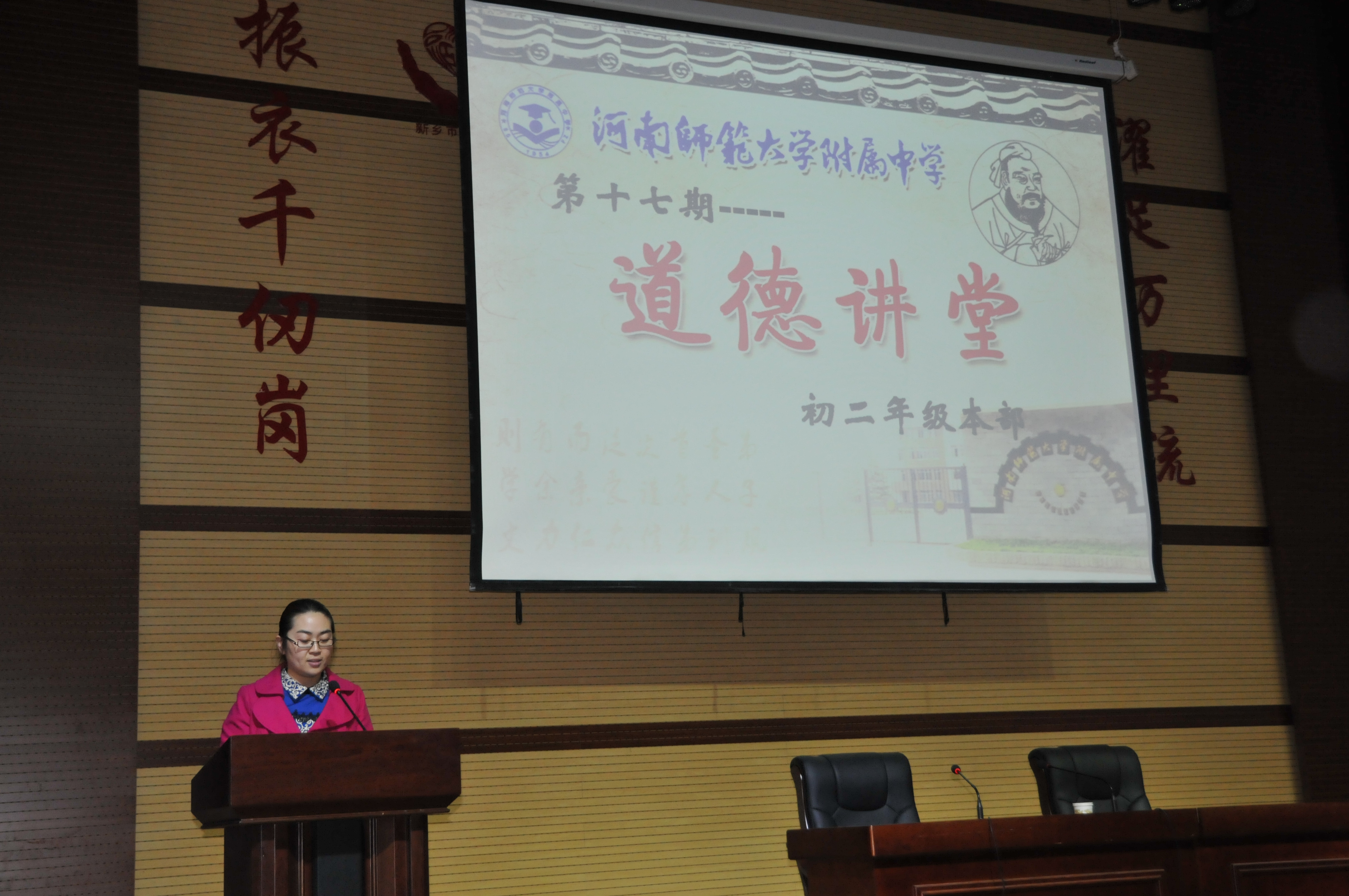 2014年12月8日下午,河南师大附中第17期道德讲堂开讲。本期道德讲堂由本部初二年级承办,主题为“爱的奉献”。学校党政领导及本部初二年级300余名师生共同参与了本次活动。
